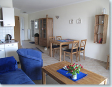 Die gemütlich eingerichtete 2-Raum-Ferienwohnung (ca. 50 qm, 2010 modernisiert) befindet sich in der 2006 fertig gestellten Ferienwohnanlage "Hafenidyll" direkt am Yachthafen von Karlshagen. Ein kombiniertes Wohn-/Esszimmer mit Schlafcouch und ein Schlafzimmer bieten Platz für 2 bis 4 Personen. Im Wohnzimmer stehen Ihnen ein Fernseher mit Kabelanschluß und eine Stereoanlage zur Verfügung.